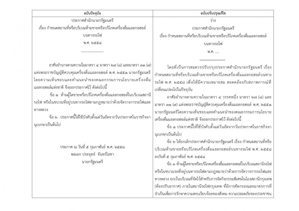 ประชาสัมพันธ์ ร่วมให้ความคิดเห็นต่อร่างประกาศสำนักนายกรัฐมนตรี เรื่อง กำหนดสถานที่หรือบริเวณห้ามขายหรือบริโภคเครื่องดื่มแอลกอฮอล์บนทางรถไฟ พ.ศ...........................