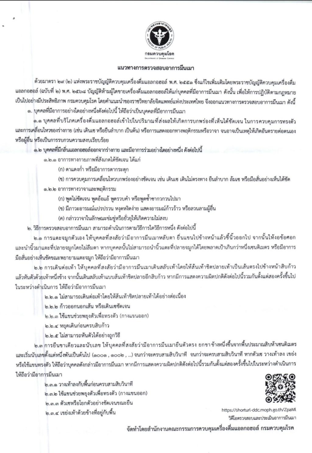 ประชาสัมพันธ์ แนวทางการตรวจสอบอาการมึนเมา...