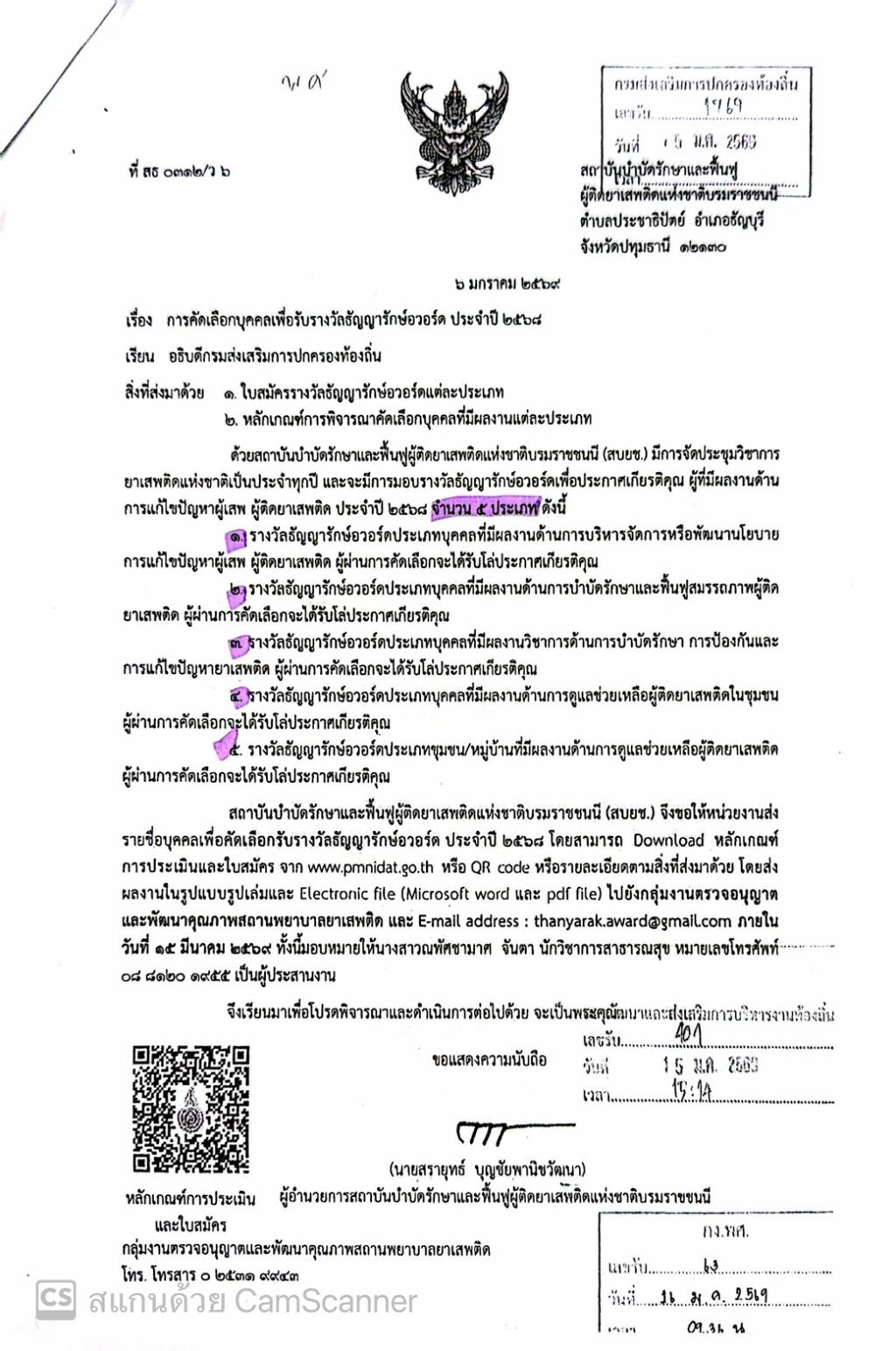 ประชาสัมพันธ์การคัดเลือกบุคคลเพื่อรับรางวัลธัญญารักษ์อวอร์ด ประจำปี 2568...
