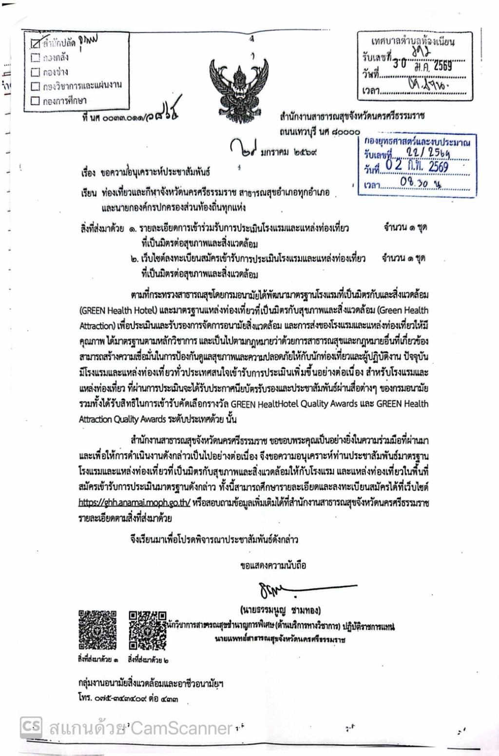 ประชาสัมพันธ์ มาตรฐานโรงแรมและแหล่งท่องเที่ยวที่เป็นมิตรกับสุขภาพและสิ่งแวดล้อมให้กับโรงแรม...