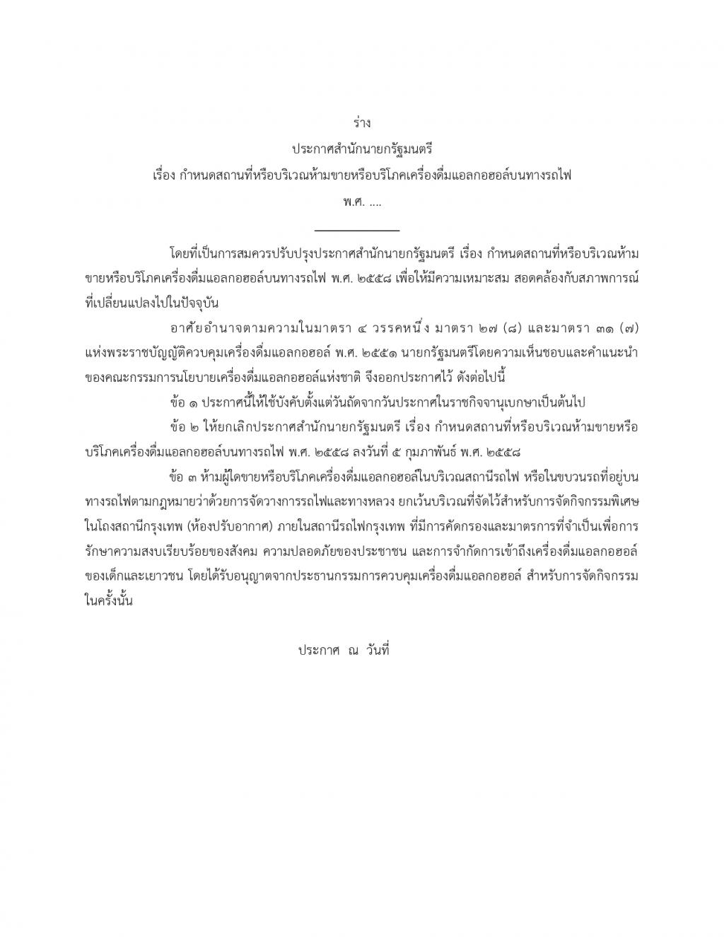 ประชาสัมพันธ์ ร่วมให้ความคิดเห็นต่อร่างประกาศสำนักนายกรัฐมนตรี เรื่อง กำหนดสถานที่หรือบริเวณห้ามขายหรือบริโภคเครื่องดื่มแอลกอฮอล์บนทางรถไฟ พ.ศ..............................