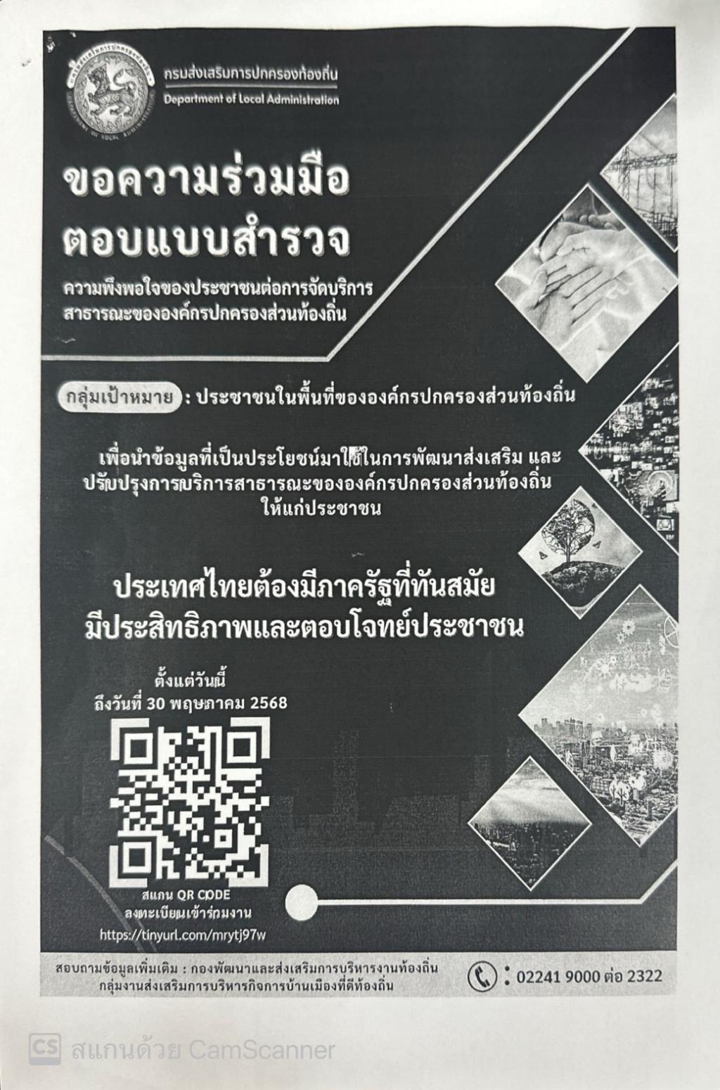 ประชาสัมพันธ์ เชิญชวนให้ประชาชนตอบแบบประเมินความพึงพอใจต่อการให้บริการสาธารณะขององค์กรปกครองส่วนท้องถิ่น ...