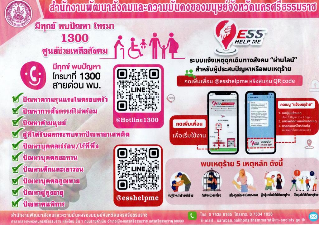 มีทุกข์ พบปัญหา โทรมา 1300 ศูนย์ช่วยเหลือสังคม...
